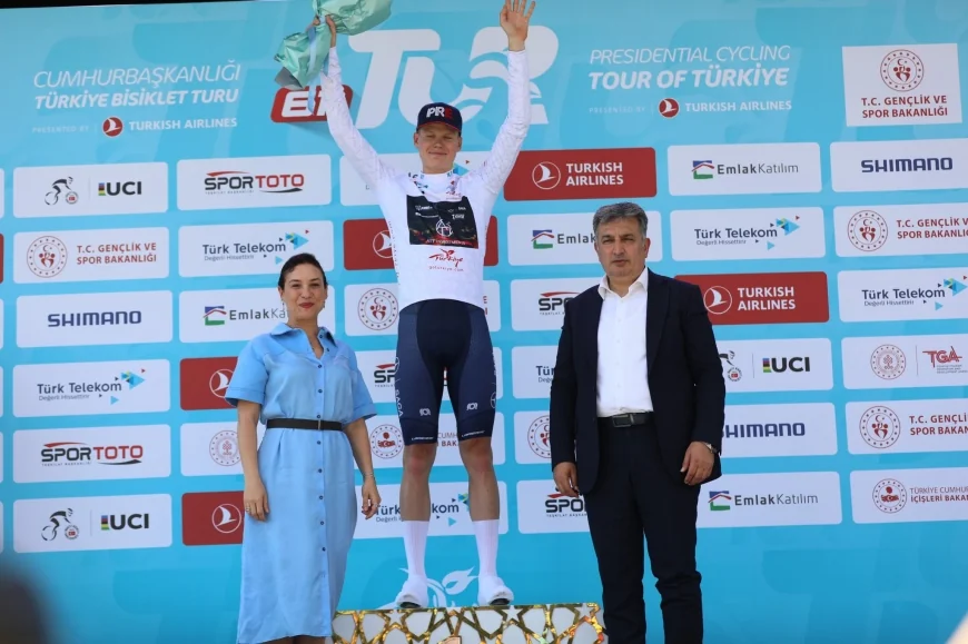 Spor Toto Sponsorluğundaki Yeşil Mayoyu Tom Crabbe’ye Bisiklet Federasyonu Başkan Vekili Fikret Hayali tarafından takdim edildi.