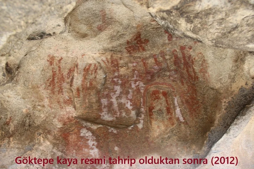 Latmos’ta 2012 yılında tespit edilen ve düğün kutlamaları, ilkbahar şenlikleri gibi geçiş ritüellerini yansıttığı düşünülen Göktepe kaya resmi, kimliği belirsiz kişi ya da kişiler tarafından üzerine sıvı sürülerek tahrip edilmiştir. Aradan geçen 14 yıla rağmen bu tahribatın failleri tespit edilememiştir.