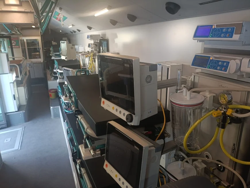 Bu araçta 8 ayrı yoğun bakım yatağı vardır. Ve aynı anda 8 hastanın ayrı ayrı tüm yaşamsal fonksiyonları takip edilerek müdahale edilebilmektedir. Hastanın kalp hızı, EKG’si, tansiyonu, vücut oksijeni, solunum hızı, vücut ısısı ayrıca damar içi basınç takibi yapılabilmektedir.