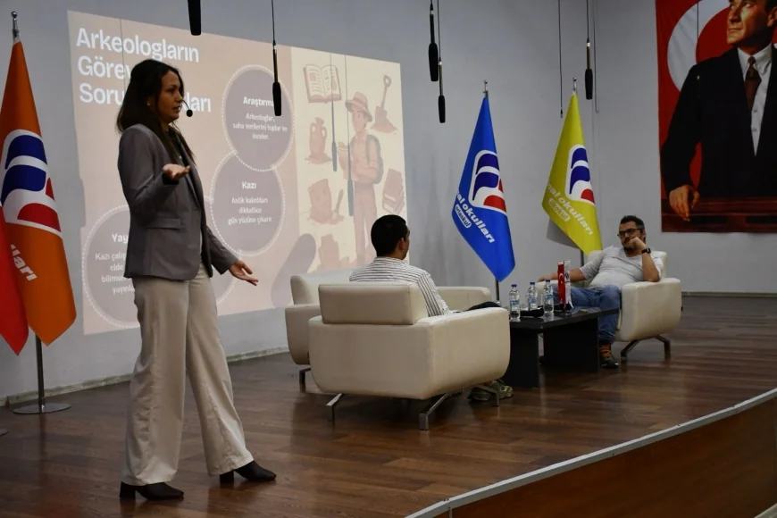 FLL 2025–2026 sezonu UNEARTHED teması kapsamında düzenlenen etkinlik kapsamındaki söyleşide; Arkeologlar Derneği Muğla Şubesi Başkan Yardımcısı Selver Kazan, Yönetim Kurulu Üyesi Gökhan Ş. Sayman ve Dernek Üyesi Mevlüt Koçan öğrencilerle bir araya gelerek arkeoloji bilimi, kazı süreçleri, kültürel mirasın korunması ve teknolojinin arkeolojideki yeri hakkında çok kıymetli paylaşımlarda bulundu.