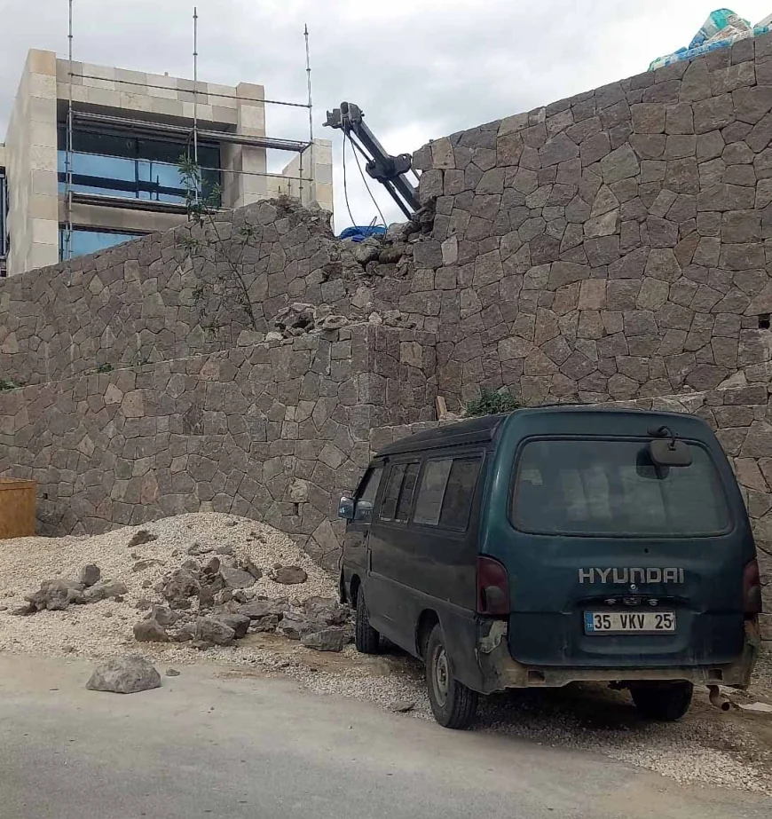 Duvarın yıkılan parçaları, yol kenarında park halinde bulunan bir otomobilin üzerine düştü. Araçta maddi hasar meydana gelirken, kazanın yaşandığı sırada bölgede yaya veya seyir halinde başka bir aracın bulunmaması olası bir faciayı önledi.