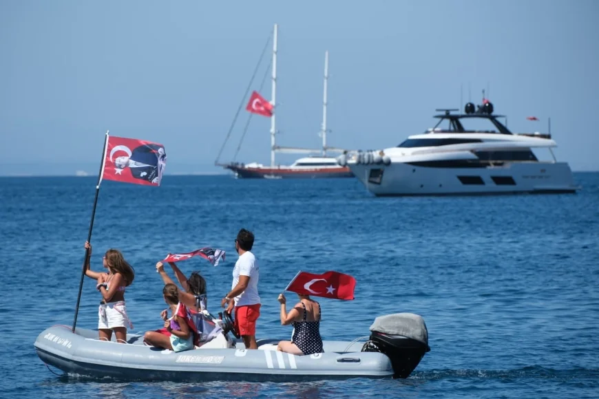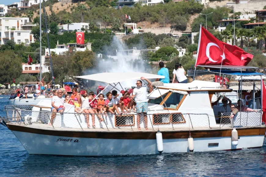 Bodrum koylarında teknelerle zafer turu attılar