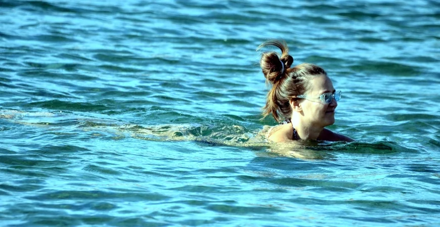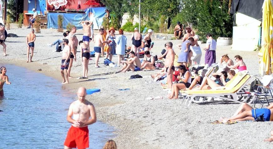 Görüntüler yaz aylarını aratmadı. 26 derece hava ve 19 derece deniz suyu sıcaklığında turistler saatlerce denize girdi, güneşlendi. Turistik ilçede güneyli ve sıcak havanın tadını çıkardı.