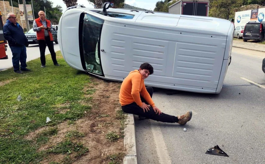 Bodrum’un Yokuşbaşı Mahallesi Emin Anter Bulvarı’nda bugün öğle saatlerinde meydana gelen kazada 34 AP 7455 plakalı otomobilin tali yoldan aniden yola çıktığı iddia edildi. Seyir halinde olan Doruk Bozkurt yönetimindeki 34 gsr 671 plakalı minibüs yola çıkan otomobile çarptı, çarpmanın etkisi ile minibüs takla atarak orta refüje çıktı.