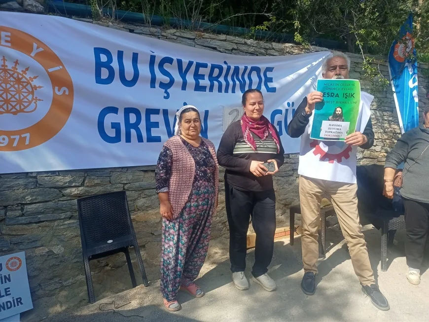 Sea Garden otelde greve başlayan ve işletme önünde grev çadırı kuran turizm çalışanlarına eylemlerinin ikinci gününde dayanışma ziyaretleri gerçekleştirildi. Akbelen köylüleri adına ziyareti gerçekleştiren İkizköy Muhtarı Nejla Işık, köylülerden Aytaç Yakar, Ayişe Günay’a; Tarım Sen Genel Başkanı Umut Kocagöz de eşlik etti.