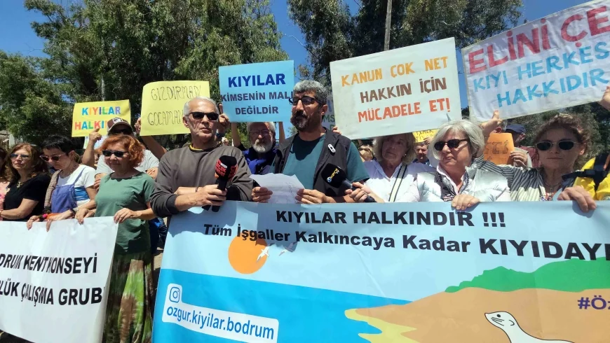 Ellerinde “Kanun Çok net Hakkın İçin Mücadele Et” Kıyılar kimsenin Mali Değildir” “Elini Çek Kıyı Herkesin Hakkıdır” yazılı dövizler ve “Kıyılar Halkındır Tüm İşgaller Kalkana Kadar kıyılardayız” yazılı pankartlarla sahile gelen onlarca kişi sık sık “Sahiller Halkındır Halkın Kalacak” “Yasayı Uygula İşgali Kaldır” sloganları attı.