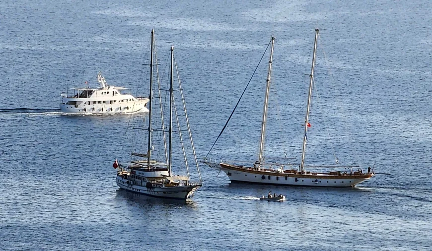 Bodrum'da Mavi yolculuk yatı karaya oturdu. Kurtarma çalışmaları başladı