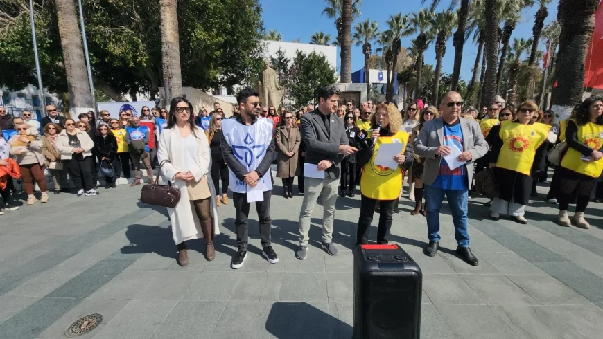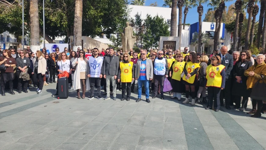 Muğla’nın Bodrum ilçesinde yaklaşık 200 öğretmen İstanbul’da biyoloji öğretmeni Fatma Nur Çelik’in öğrencisi tarafından katledilmesi nedeniyle iş bıraktı eylem yaptı.