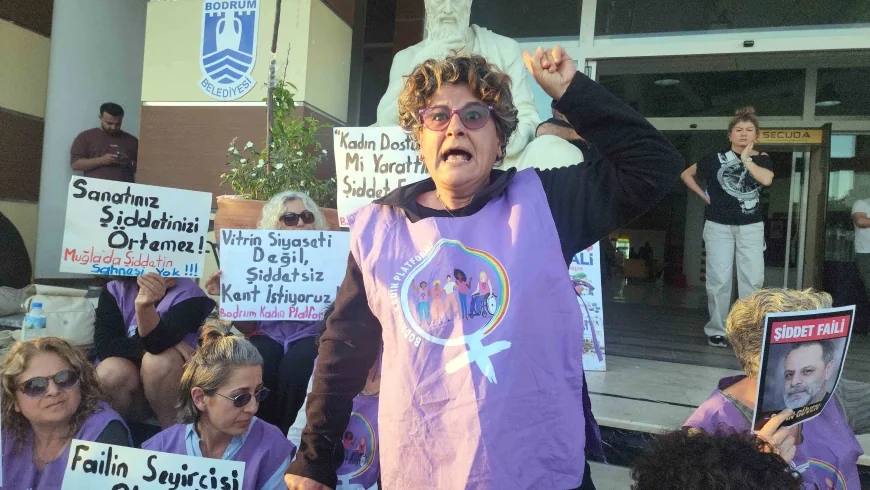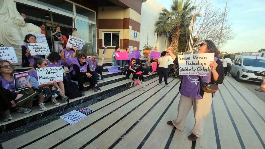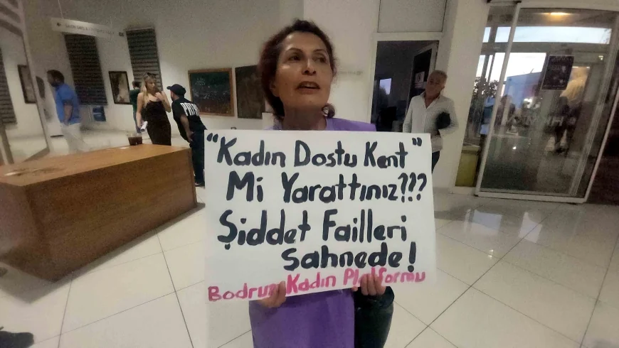 Yaklaşık 15 dakika salon kapısında eylem yapan iki kadın sivil toplum örgütü ortaklaşa yaptıkları açıklamada “Ozan Güven kadına şiddet uygulayan bir faildir ve bunu sanat ile aklayamaz. Bodrum Belediyesi ise bu şahsa salon vererek şiddete ortak olmuşlardır. Kamunun halkın parası ile kadına şiddet uygulayan bir kişiye salon veren belediyenin kadınlar için yaptıkları hiç birşeye inanmıyoruz. Kadına şiddeti sanat ile temizleyemezler, öfkemiz bundan” dediler.
