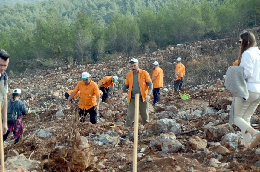 5 Eylül 2025 tarihinde Bodrum’un Güvercinlik Mahallesi’ndeki ormanlık alanda çıkan 5 hektarlık yangında kül olan alanda tören düzenlendi.