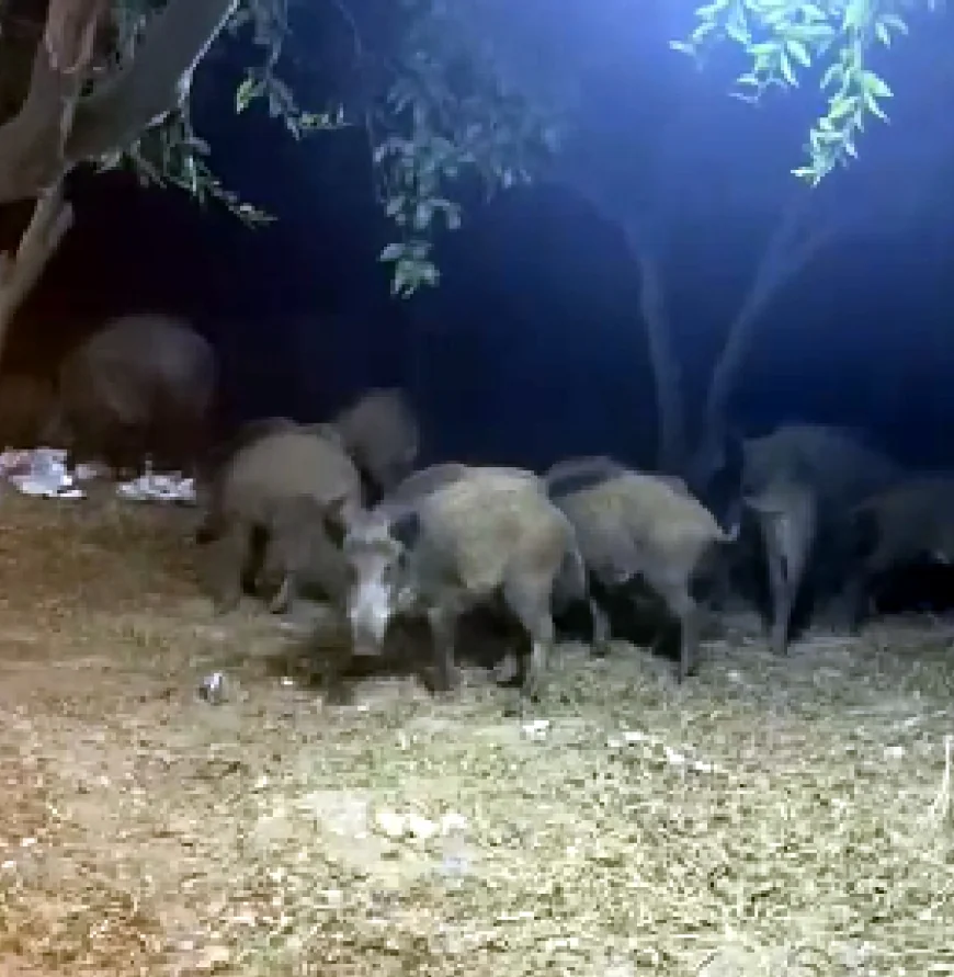 Muğla’nın Bodrum ilçesinde bir düğünün ortasına gelen domuz sürüsü düğünün ilgi odağı oldu. Onlarca kişi pistte dans edip oynarken domuz sürüsü artın yiyecekleri yemeye devam etti.