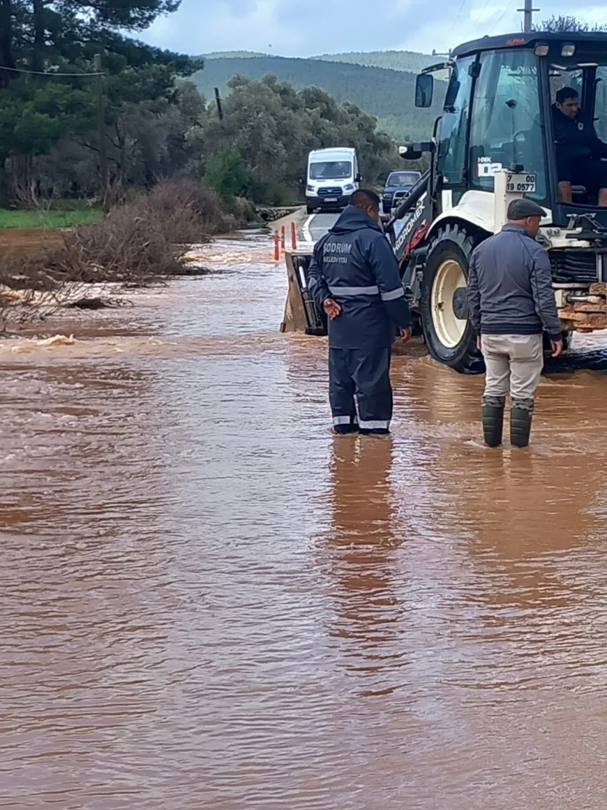 Muğla’nın Bodrum ilçesinde aniden bastıran sağanak yağış derelerin taşmasına kırsal kesimdeki tarım arazileri ve ahırların sular altında kalmasına neden oldu.60 adet tavuk sel sularına kapıldı, bazı köylerin yolu kapandı.