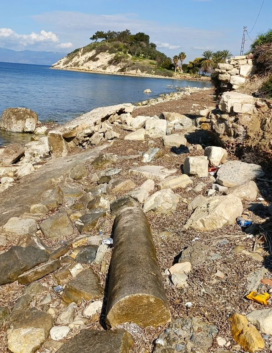 ***Henüz bir kazı çalışması yapılmamış olmasına rağmen, yüzey çalışmalarıyla bile birçok bulguya rastlanan Yılancıburnu’nda, son olarak 2025 yılı Şubat ayında, dalgaların aşındırdığı geç döneme ait bir duvarda devşirme olarak kullanıldığı anlaşılan, Arkaik Dönem’e ait bir Kouros Torsosu (genç erkek heykeli gövdesi) bulunmuştu.