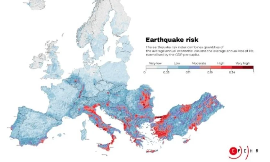 Avrupa'da sismik riskin en yüksek olduğu ülkeler Türkiye, Yunanistan, Arnavutluk, İtalya ve Romanya olarak belirtildi.
