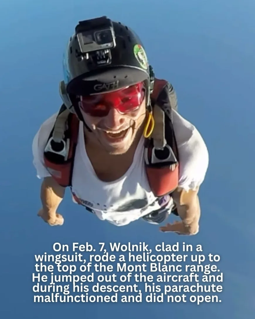 Fransız kanatlı tulum dünya şampiyonu 37 yaşındaki Pierre Wolnik, Avrupa'nın en yüksek zirvesi üzerinde yaptığı atlayış sırasında paraşütünün açılmaması sonucu hayatını kaybetti .