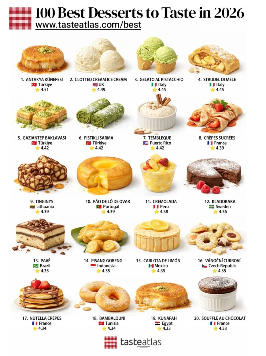Taste Atlas'ın yeni yıl için dünyada denemeye değer en iyi tatlıların listesini açıkladı.