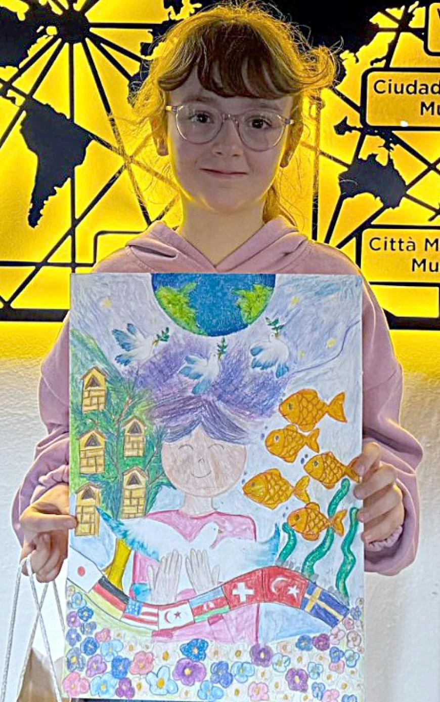 “Peaceful Towns” 2025 Çocuk Resim Yarışması’na Muğla’dan Elif Kayra Taşkaya katıldı ve uluslararası jüri tarafından yapılan değerlendirme sonucunda yarışmanın en prestijli, özel ödüllerinden biri olan “Mayors for Peace Genel Sekreteri Ödülü”ne layık görüldü. Yarışmaya 19 ülke, 153 şehir 8 bin 79 eserle katıldı. Elif Kayra Taşkaya’nın eseri 8 bin 79 eser arasından seçilerek önemli bir başarıya imza attı.