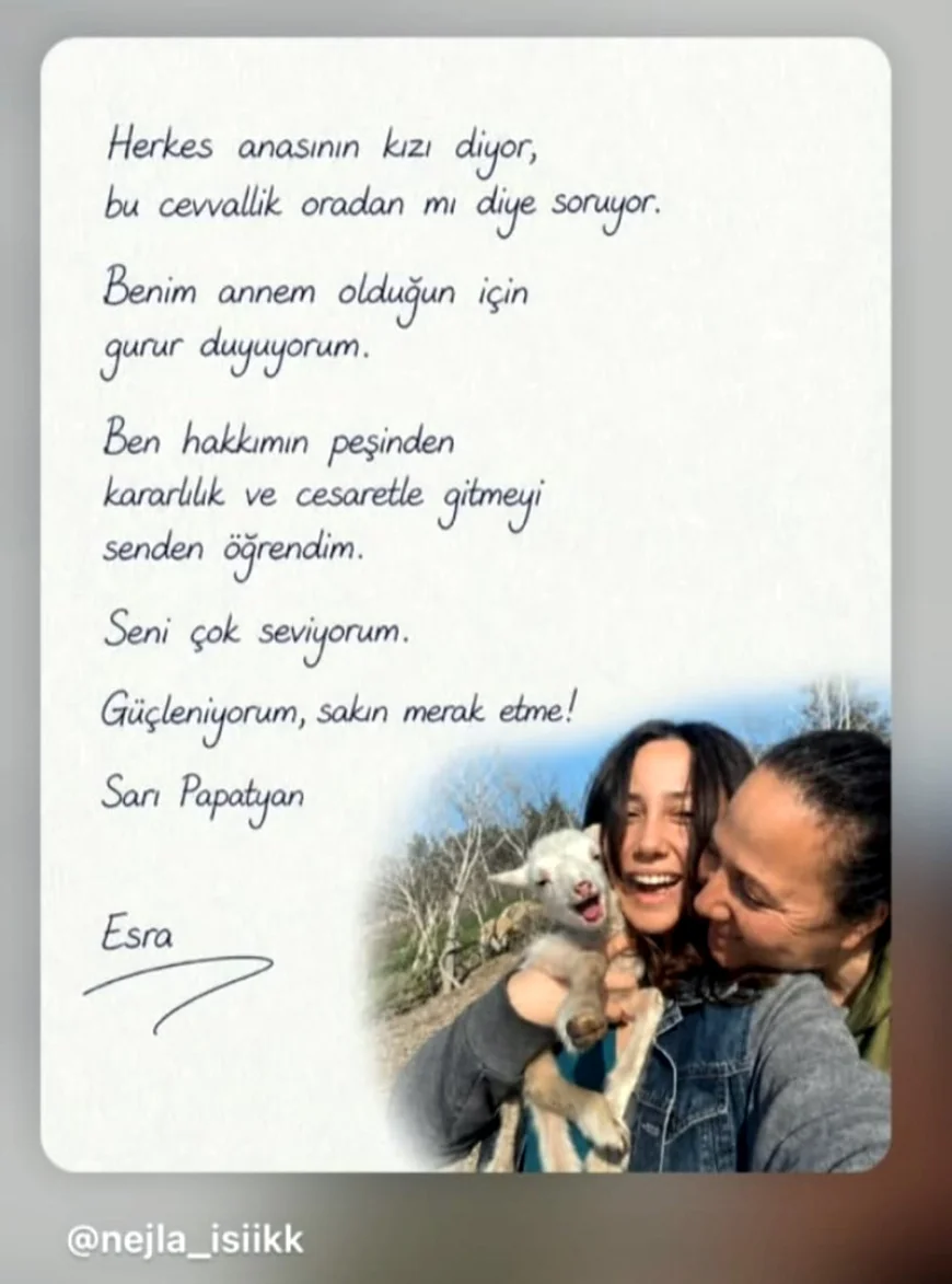 Esra’dan annesine “Herkes anasının kızı diyor, gururluyum”