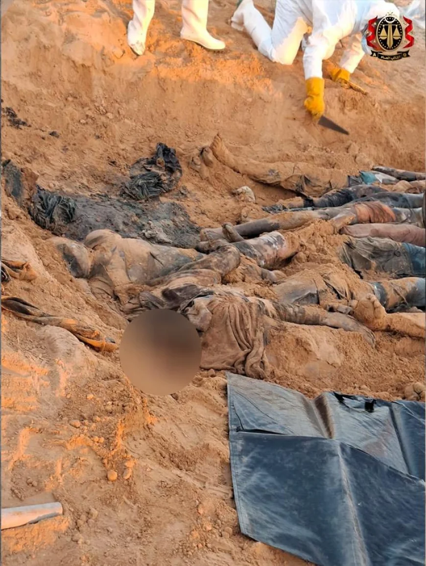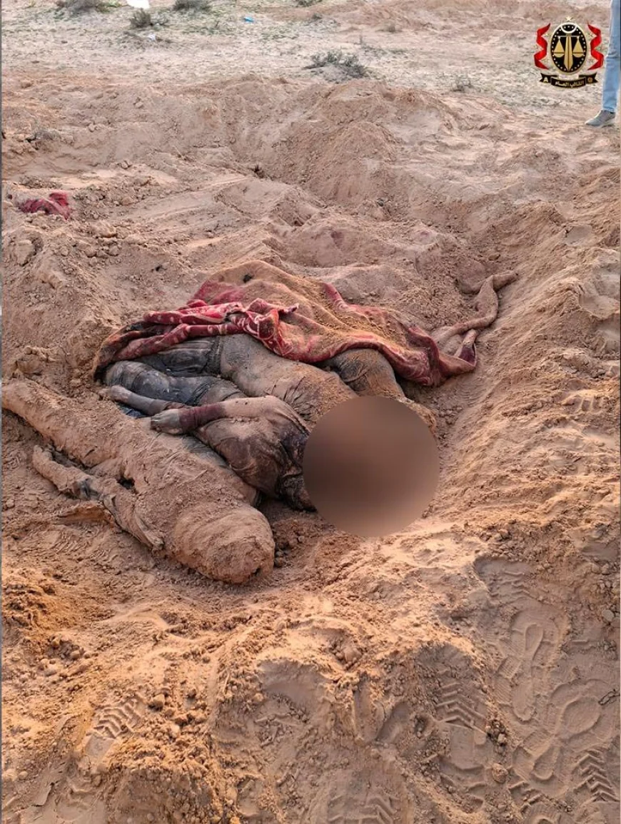 Libya Devlet Başsavcılığı tarafından sosyal medyadada yayınlanan fotoğraflarda göçmen kaçakçıları tarafından rehin alınan ve ailelerinden fidye istenen göçmenlerin , fidyelerin gönderilmemesi üzerine öldürülüp çöle gömüldüğü ortaya çıkarıldı.