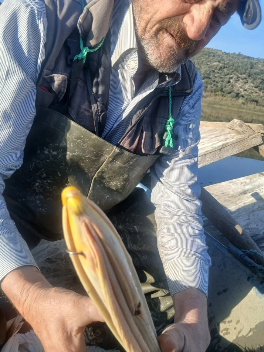 Aydın’ın Kuşadası ilçesindeki Azap Gölü’nde avlanan ve Nesli Tehlike Altında bulunan Tepeli Pelikan (Pelacanus crispus)'lardan olan balıkçıl pelikanın gagası göle atılan oltalara takıldı.