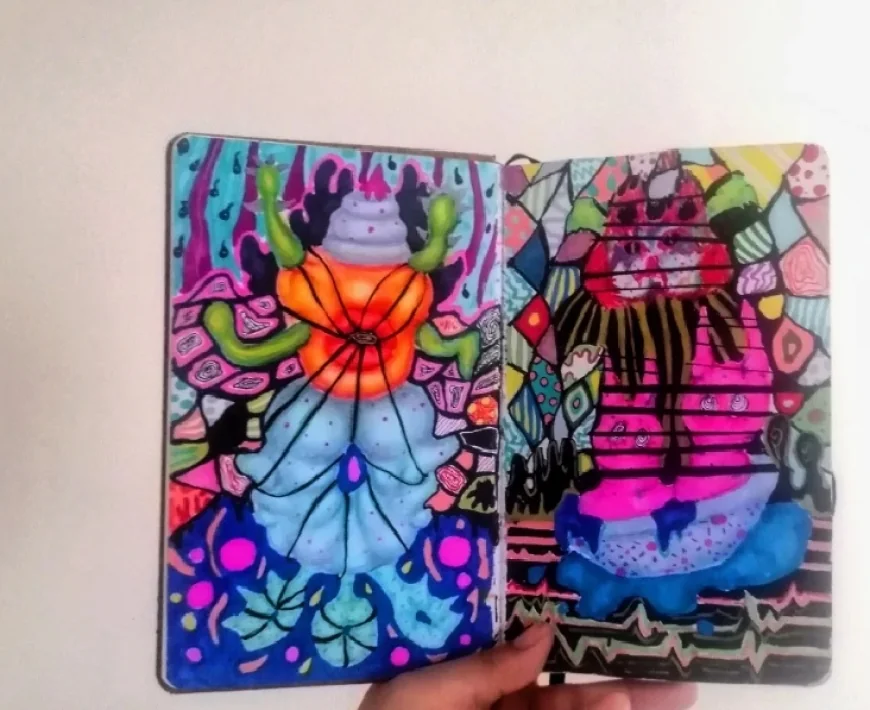 Çalışmalarında parlak renkler, deformasyona uğramış figürler ve yoğun desenler öne çıkan Aydın, G bu görsel dilin bilinçli bir estetik tercihten çok yıllar içinde doğal bir ifade biçimine dönüştüğünü söyledi. Sanatçı, çocukluk yıllarından bu yana çizim yaparken planlı bir tasarım yerine akışın içinde kalmayı tercih ettiğini belirterek; “Aslında bu kendiliğinden ortaya çıktı. Çocukluğumdan bu yana kağıt üzerinde plan yapmadan, bir akış içerisinde çizim yapıyorum.” Dedi.