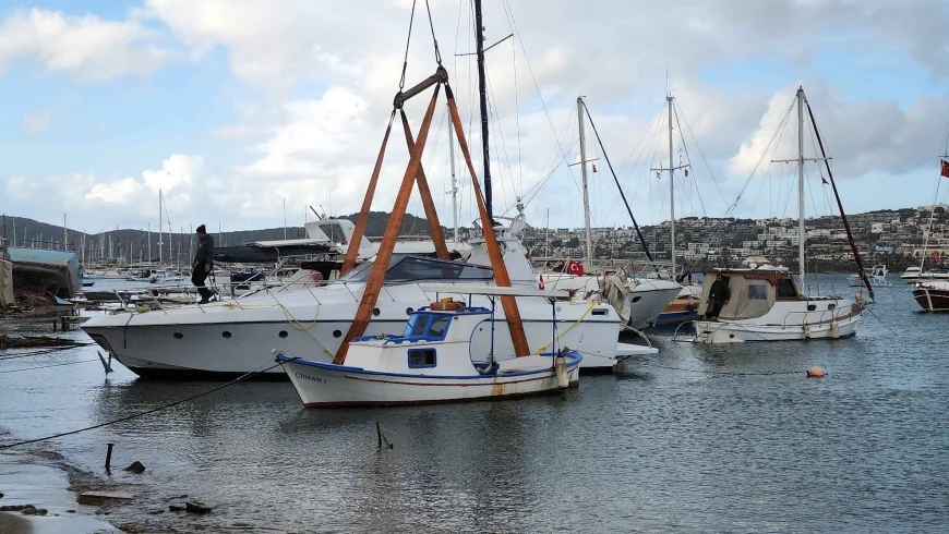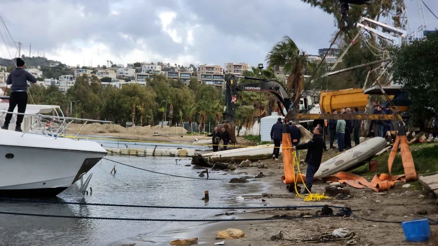 İskeleler yıkıldıktan sonra onlarca teknenin Gümbet Koyu’nun ortasında kaldığı ve bazı teknelerin birbirine çarptığı görüldü.