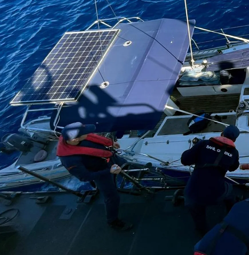 Güneş enerjili yelkenli tekne ile umuda yolculuk sahil güvenliğe takıldı