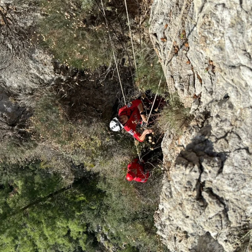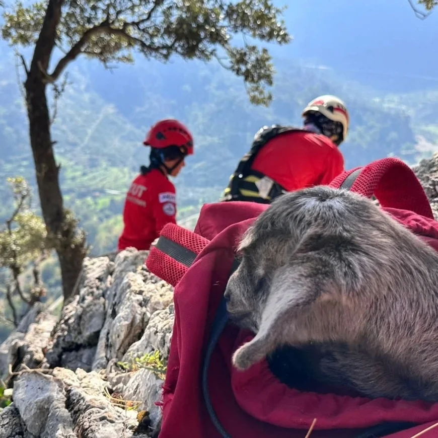 Uçurumda mahsur kalan keçiler AKUT ekipleri tarafından kurtarıldı.