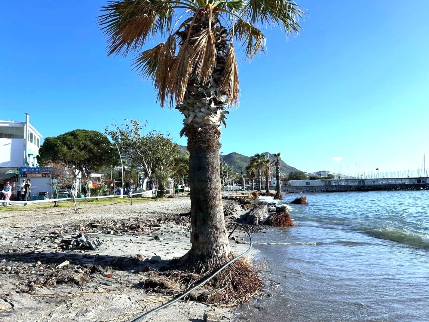 Bodrum’un dünyaca ünlü Günbatımı plajlarında sahilin ekolojik ve fiziki dengesinin bozulması ve plansız yapılan çalışmalar nedeniyle asırlık palmiyelerin denizin içinde kaldığı , ölmeye başladığı bazılarının kökünden kesildiği görüldü.