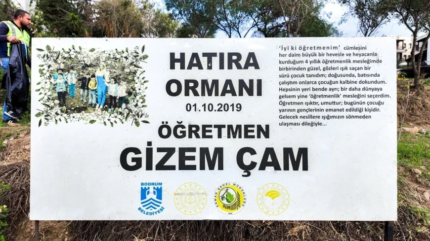 Muğla’nın Bodrum ilçesinde bir yıllık anaokulu öğretmeni iken 27 yaşında yaşamını yitiren öğretmen Gizem Çam anısına Hatıra ormanı oluşturuldu, öğrencileri 150 çam fidanı dikti. Anne Kader Çam “Kızımın anıları öğrencileri ile bu alanda büyüyüp orman olacak” dedi.
