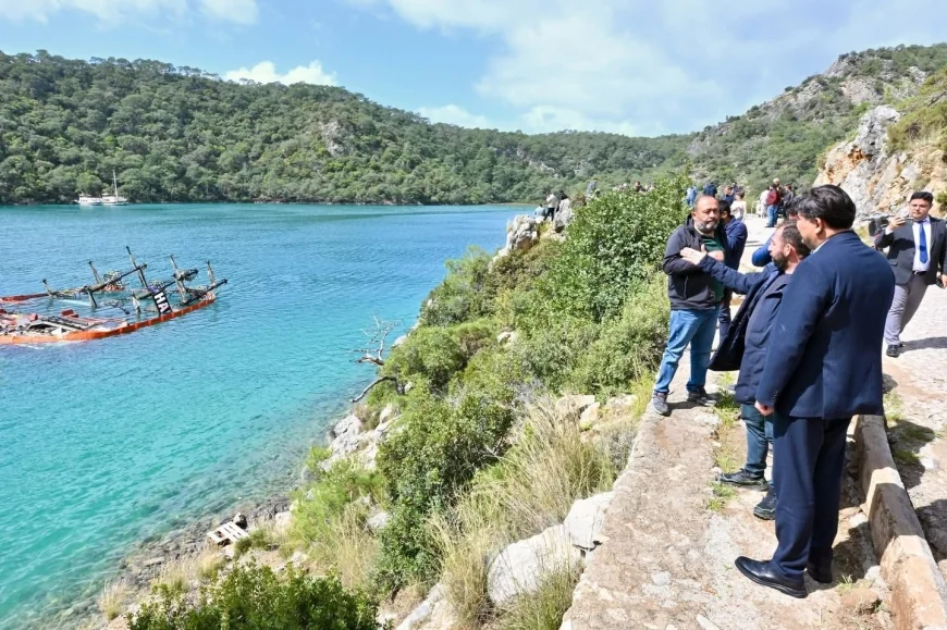 Fırtına sırasında teknede bulunan ve uyuduğu belirtilen İbrahhim Özbek’in ölçümünün ardandan Fethiye Belediye Başkanı Alim Karaca ve denizciler batan teknenin bulunduğu bölgede inceleme yaptı.