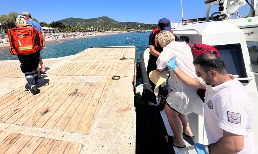 Bodrum'dan mavi yolculuğa çıkan Alman turist Orak Adası yakınlarında fenalaştı. Acil yardım çağrısı üzerine Alman turisti bulunduğu tekneden Bodrum’a sahil güvenlik ekipleri ulaştırdı.