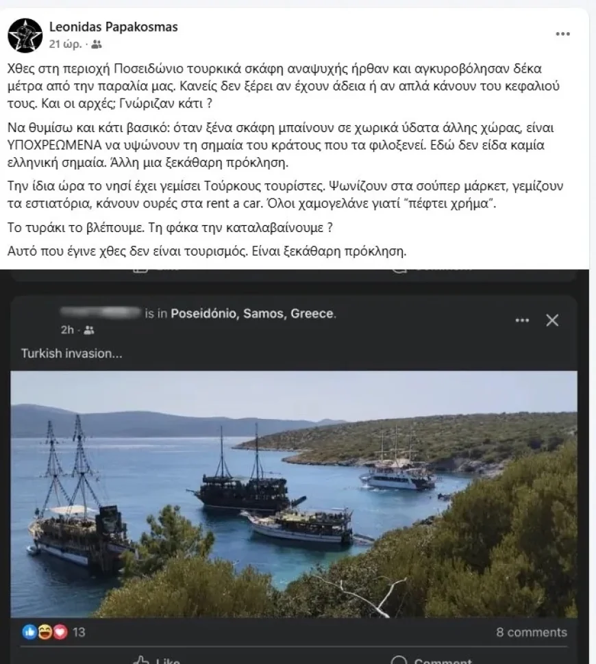 “Türk turist tekneleri Samos’ta demir attı” başlığı ile yayımlanan haberde Türk bayraklı tur teknelerinin fotoğraflarına da yer verildi.