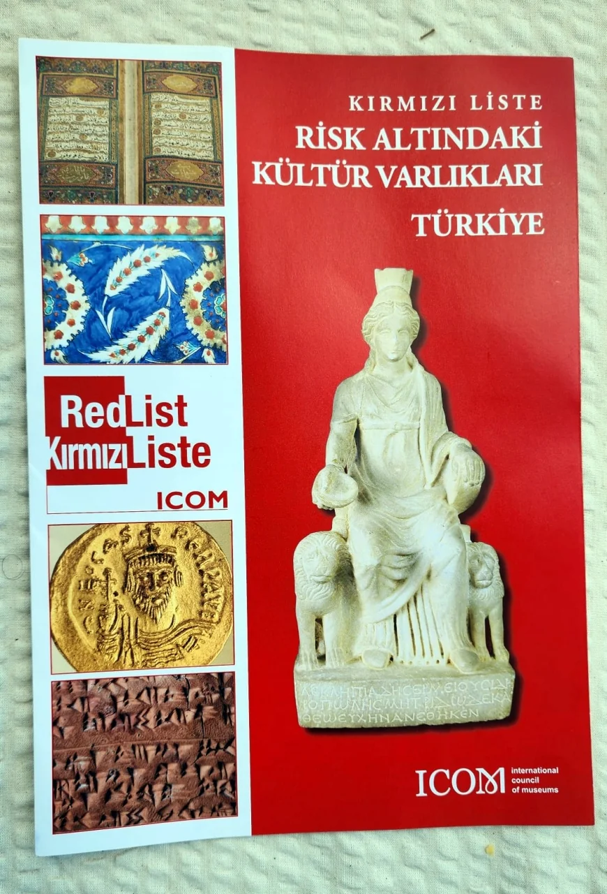 Kültür Varlıkları ve Müzeler Genel Müdürlüğü Kaçakçılıkla Mücadele Daire Başkanı Zeynep Boz bugün yaptığı açıklamada “Tarihi ve kültürel öneme sahip eserlerin kaçakçılığını önlemek amacıyla Türkiye’ye ait bir listenin oluşturulması için 2 ekim 2023 tarihinde bakanlığımız. ICOM ve ICOM Türkiye arasında anlaşmalar imzalandı. Türkiye’nin kültürel mirasını temsil eden görsellerin ve ilgili kanunların yer alacağı bu rehber, müzeler. Koleksiyoncular, kolluk kuvvetleri, gümrük yetkililerivle sanat piyasası profesyonelleri için önemli bir kaynak olacak, tarihi eserlerin kaçakçılığı ve pazarlanmasında ciddi önleyici etkisi olacaktır” dedi. Kırmızı Liste çalışması ile değerli kültür varlıklarımızın korunması için farkındalık yaratılması hedeflenmektedir” dedi.
