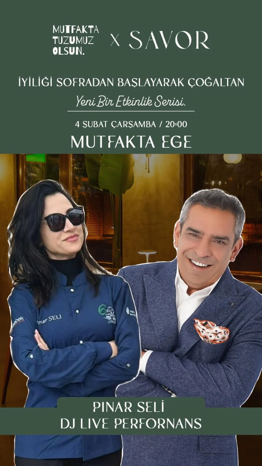 Bu anlamlı dayanışma hikâyesi, 4 Şubat Çarşamba günü saat 20.00’de Savor Ortakent’te düzenlenecek yeni etkinlikle devam edecek. Kendi alanlarında tanınan ve sevilen isimlerin mutfağa gireceği gecede, katılımcılar birlikte yemek yapacak, hazırlanan lezzetler tadılırken şarkılar, şiirler ve sohbetlerle program interaktif bir deneyime dönüşecek.
