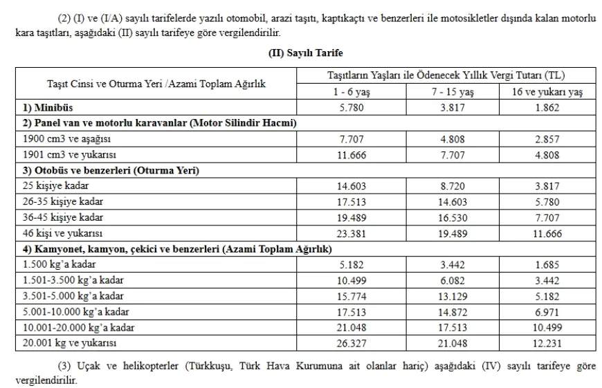 Bu kapsamda sıfır araçta en düşük MTV, 3 bin 359 liradan 4 bin 834 liraya yükseldi. En yüksek MTV ise 192 bin 250 liraya çıktı.