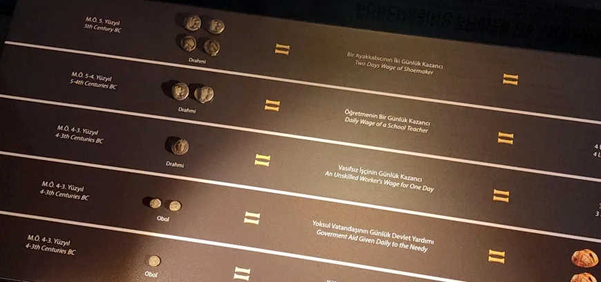 Yaklaşık 2300-2400 yıl önce bir öğretmenin günlük kazancı ile 4 litre zeytinyağı ve 3 kilogram et (Bugünün değeri ile yaklaşık 4400TL) para kazandığı, vasıfsız bir işçinin günlük kazancının 3 litre şarap ve 1,5 kilo et alımına (Yaklaşık 2 bin TL’ ye denk geldiği, yoksul vatandaşa ise devletin her gün 8 ekmek ile bir litre zeytinyağı (Yaklaşık 800 TL.) yardım yaptığı ortaya kondu.