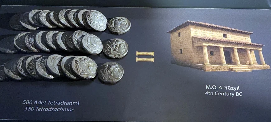 M.Ö. 3.4. ve 55. Yüzyıla ait yaklaşık 200 gümüş sikke ve para birimlerinin yer aldığı sergide Tedradrahmi, Didrahmi, drahmi ve Obal para birimlerinin alım güçleri örneklerle sergilendi.