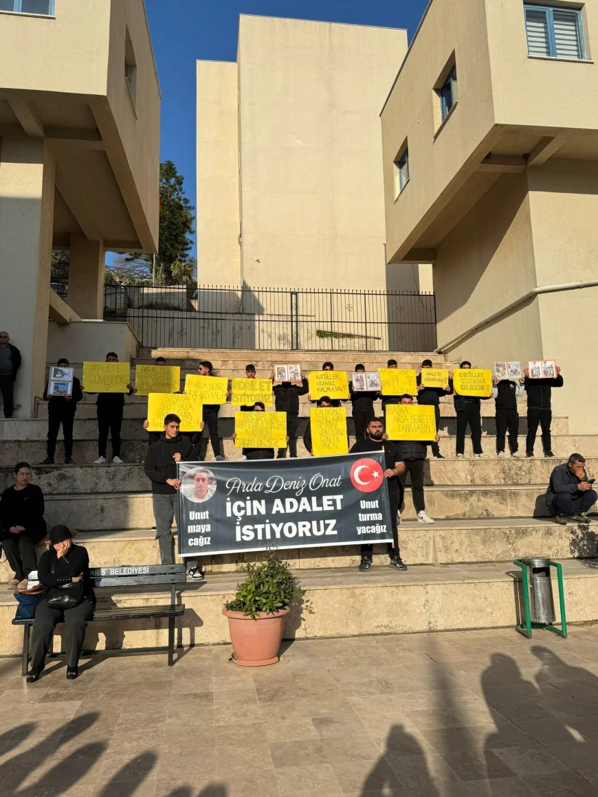 Saat 09.30’da başlayan duruşma öncesinde Arda Deniz Onat’ın ailesi, yakınları ve arkadaşları adliye bahçesinde bir araya gelerek adalet talebinde bulundu. Onat’ın arkadaşları ellerinde “Susma suçsuz olsa sana gelecek”, “Arda Deniz yaşasaydı 21 yaşında olacaktı”, “Benim de hayallerim vardı Arda Deniz”, “Çaldığınız gençliğin hesabını vereceğiniz günler yakın” yazılı pankartlar taşıdı.