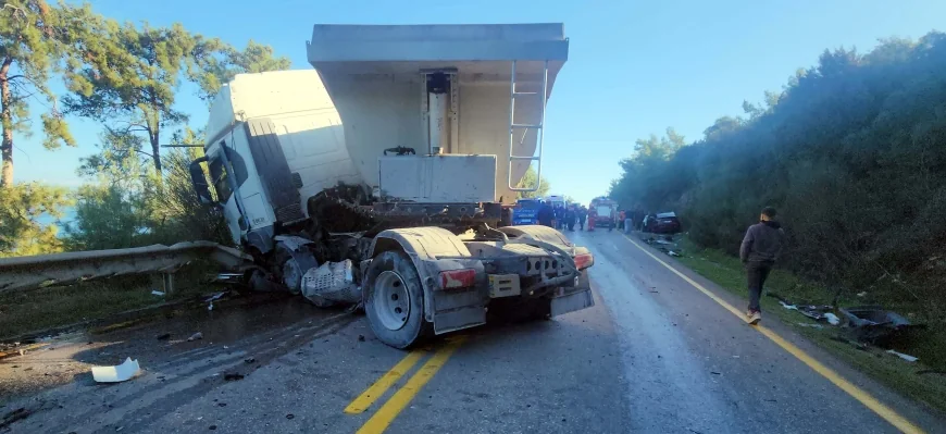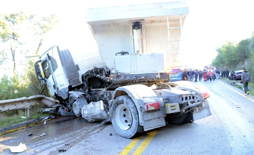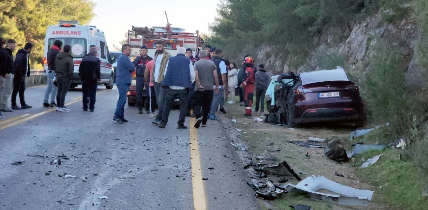 Muğla’nın Bodrum ilçesine bağlı turistik Torba Mahallesi ile Gölköy Mahallesi arasındaki karayolunun Demir mevkiinde bu sabah saatlerinde meydana gelen kazada inşaat mühendisi Ersin Ö.’nün kullandığı ve şerit ihlali yaptığı iddia edilen 48 ASS 616 plakalı otomobil ile karşı istikametten gelen A.E’nin kullandığı 35 BNG 809 hafriyat kamyonu kafa kafaya çarpıştı.