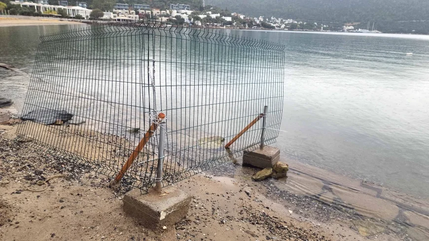 Torba’da Bakan’ın oteli denizin içine kadar tel çekti, tepki geldi