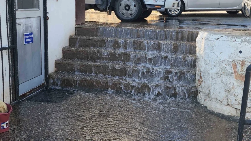 Torba'da su isale hattı kafeteryanın ortasında patladı tonlarca su boşa aktı