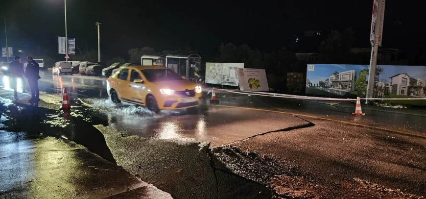 Torba Mahallesi'nde bu akşam saatlerinde su isale hattında meydana gelen patlama caddeyi ikiye ayırdı. Tonlarca su boşa aktı