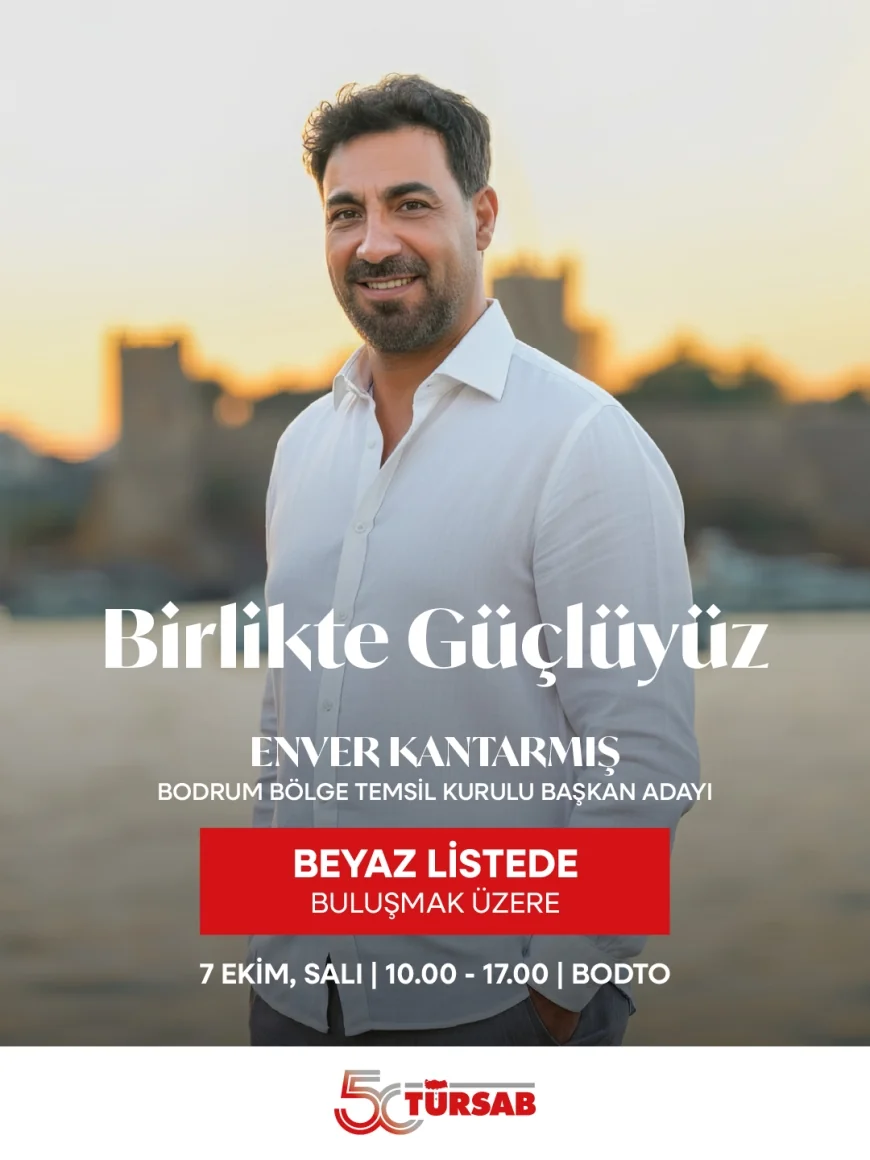 Enver Kantarmış ve ekibi, 7 Ekim 2025 tarihinde Bodrum Ticaret Odası’nda gerçekleşecek TÜRSAB Bodrum Bölge Temsil Kurulu seçimlerinde Beyaz Liste ile yarışacak.