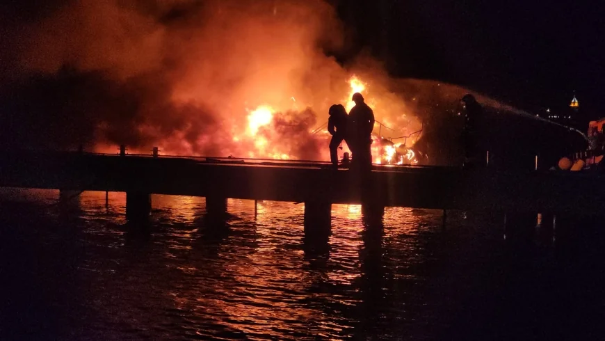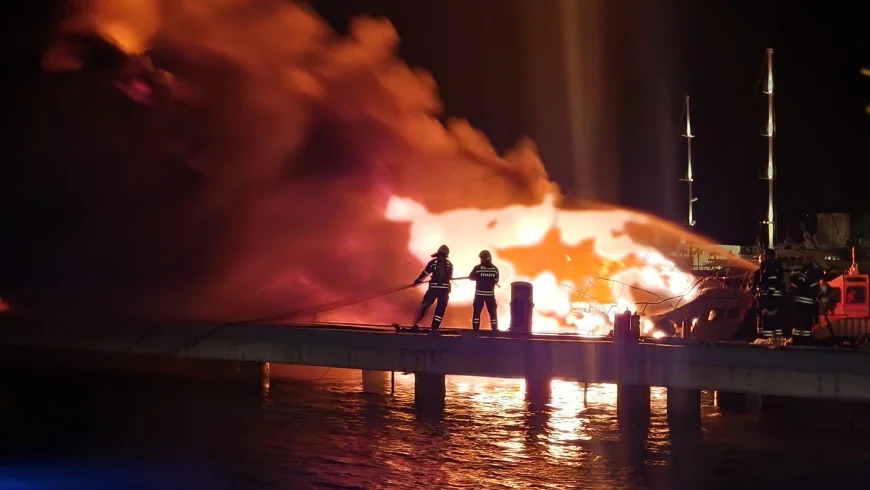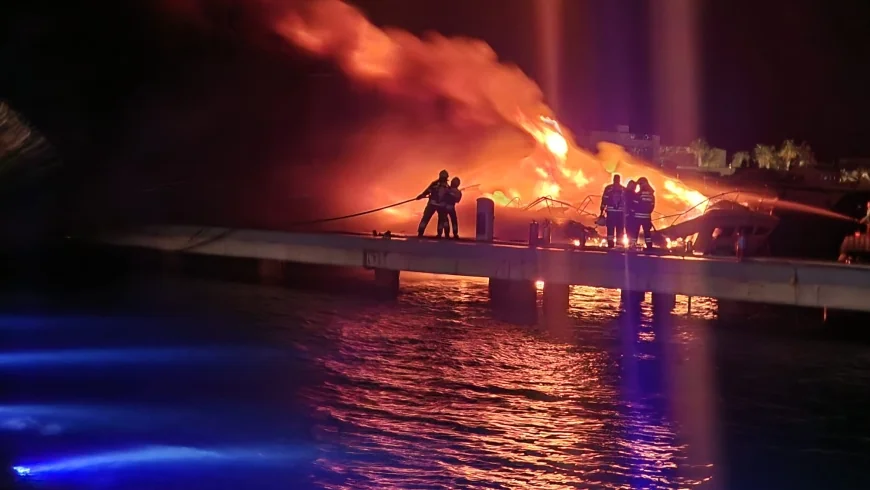 Muğla’nın Bodrum ilçesindeki marinada yatlar yaklaşık üç saattir alev alev yanıyor.Yangında 8 yat yanarak battı 2 teknede hasar oluştu