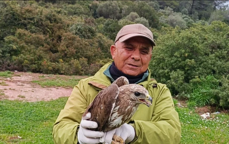 Aydın’ın Kuşadası ilçesinde Selma Demirbilek tarafından bulunan yaralı şahin tedavisinin ardından doğaya salındı.
