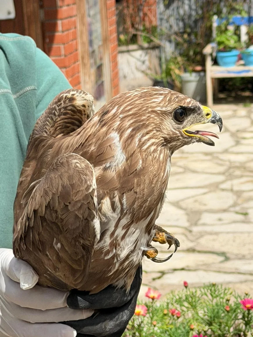 Aydın’ın Kuşadası ilçesine bağlı Davutlar Mahallesi sahilinde Selma Demirbilek tarafından bulunan yaralı bir şahin Ekosistemi Koruma ve Doğasevenler Derneği’ne (EKODOSD) ulaştırıldı. Yapılan kontrollerde, şahinin sağ kanadında muhtemelen bir çarpma sonucu oluşmuş küçük bir yaralanma tespit edildi.