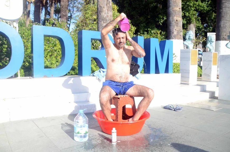 Muğla’nın turistik ilçesi Bodrum’da bugün susuzluğu protesto eden ve saçkıran hastalığına yakalandığını söyleyen turizmci belediye meydanında soyundu, leğende yıkandı. Vatandaşların şaşkın bakışları arasında damacanadan aldığı su ve şampiyon ile yıkanan Çağatay Yavuz “Yetti artık, son olarak Bodrum’un merkezindeki evimizde 6 gündür su yok. Artık sağlığımızı kaybetmek üzereyiz, vatandaşların isyanını tepkisini duysunlar dünya markası Bodrum’da çözüm bulsunlar” diye konuştu.