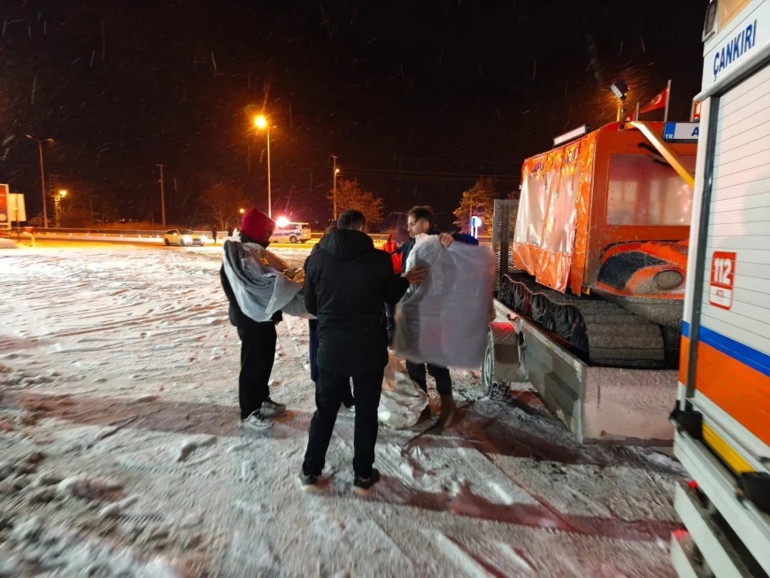 Bolu/Gerede – Karabük – Çankırı/Çerkeş güzergâhlarında kar yağışı nedeniyle kapanan yollarda, Karayolları Genel Müdürlüğü ekipleri yol açma çalışmalarını aralıksız sürdürüyor. Yolda kalan vatandaşlara ise AFAD ve Türk Kızılay ekipleri tarafından destek sağlanıyor.