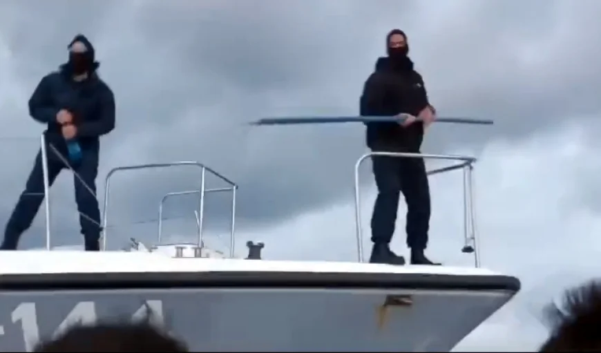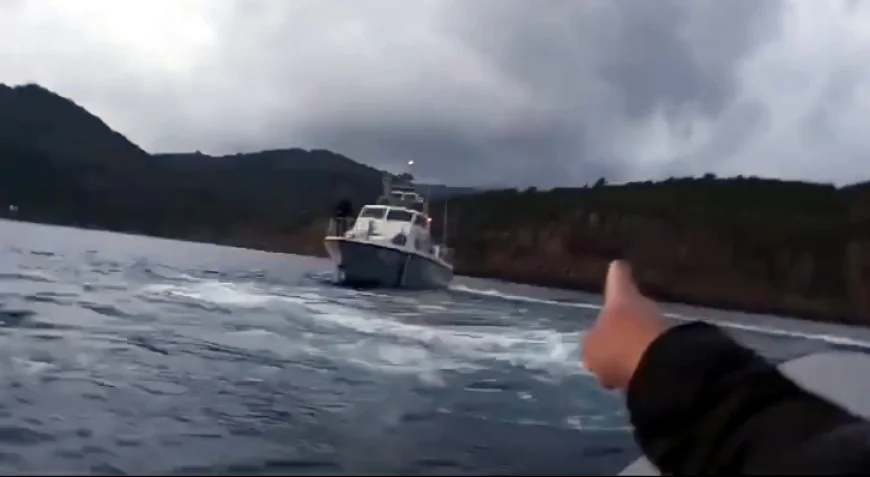Yunanistan yüzü maskeli eli mızraklı ekipleri ile yine itekledi Türk sahil güvenliği kurtardı, dehşet anları göçmen kamerasında (VİDEOLU HABER)